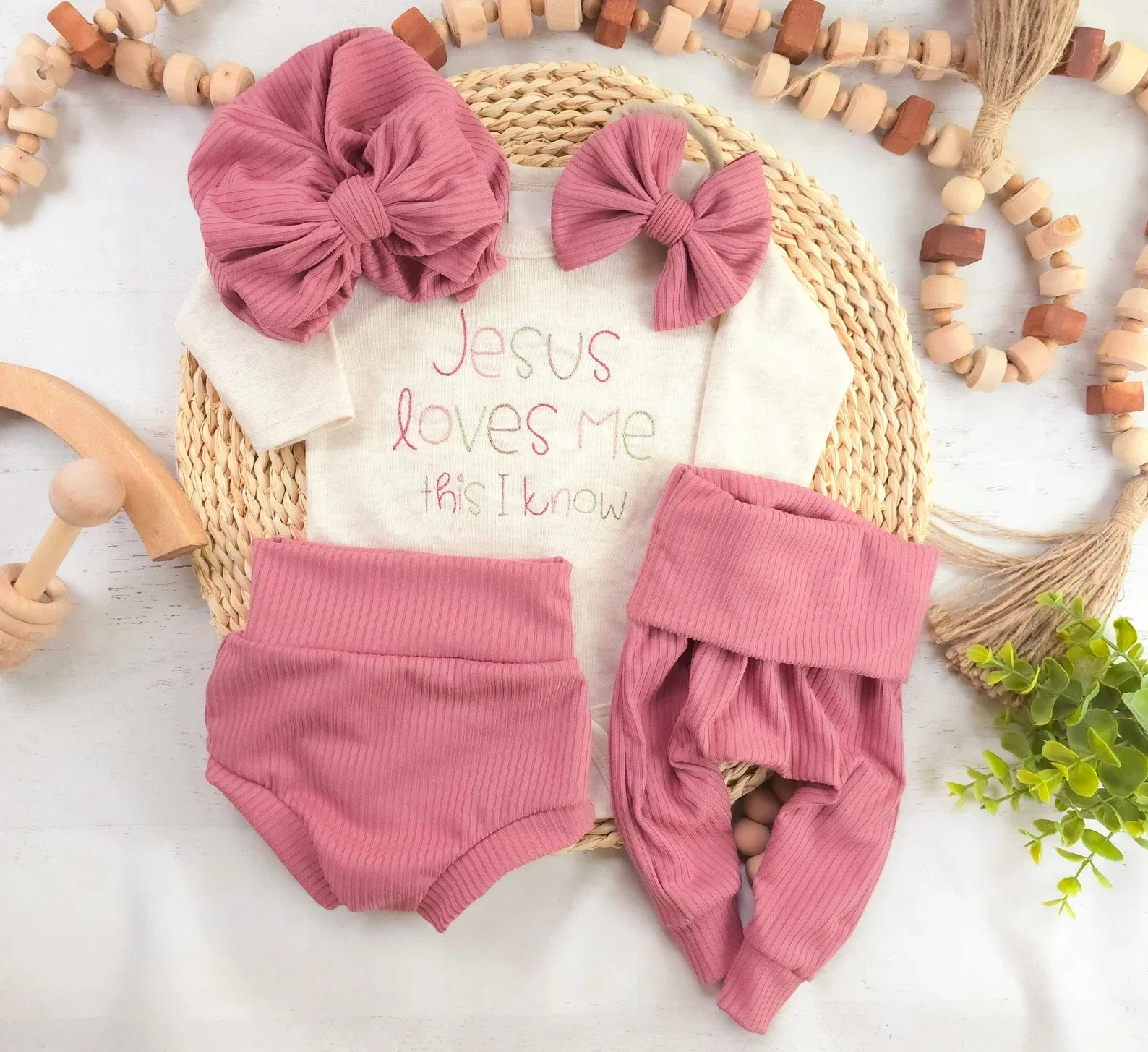 Jesus Loves me baby girl set (contains)